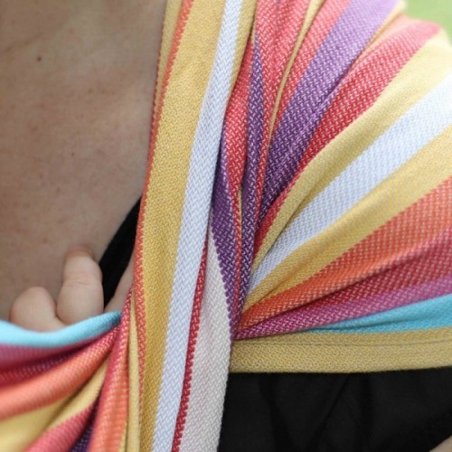 Слінг-шарф подвійного діагонального плетіння NeoBulle Lola ідеальний для тих, хто вчиться мотати шарф і хоче носити малюка з перших днів. Шарф виготовлений з бавовни, що добре для літнього слінгоношення.